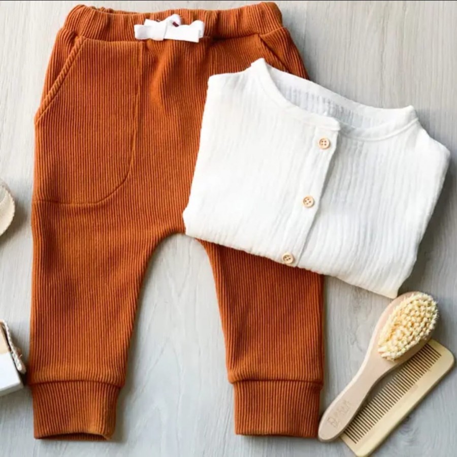 Pantalon en jersey de couleur camel qui se compose de 2 poches sur le devant. La taille élastique pour le confort et le nœud pour ajuster la taille sont un vrai plus!